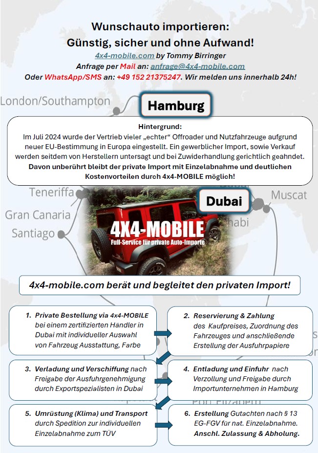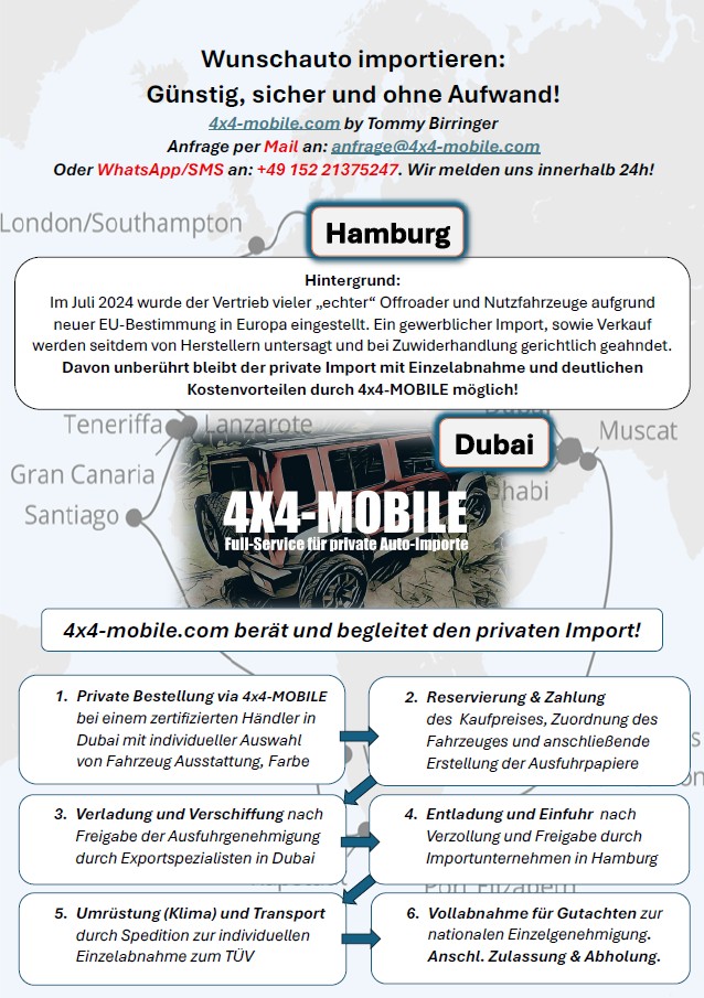 4X4-MOBILE bietet eine Full-Service-Betreuung für den privaten Import